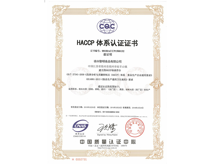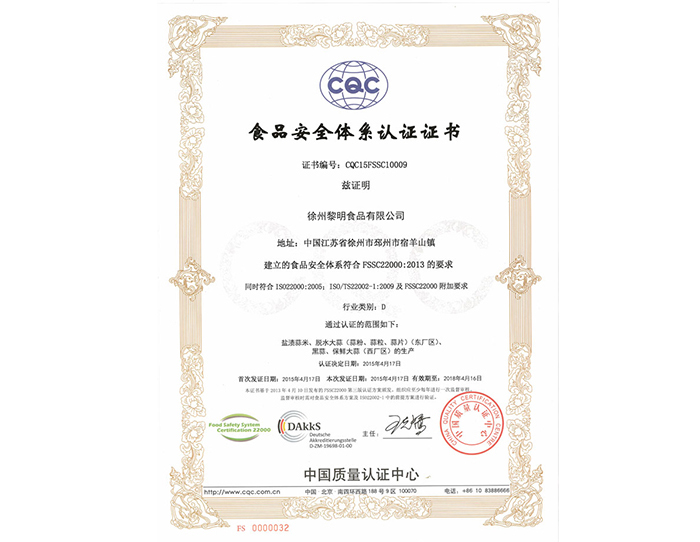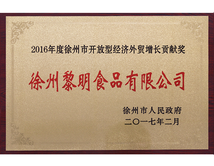 江蘇黎明食品集團有限公司先后榮獲“中國大蒜十大出口商”、“大蒜年會突出貢獻獎”榮譽稱號。