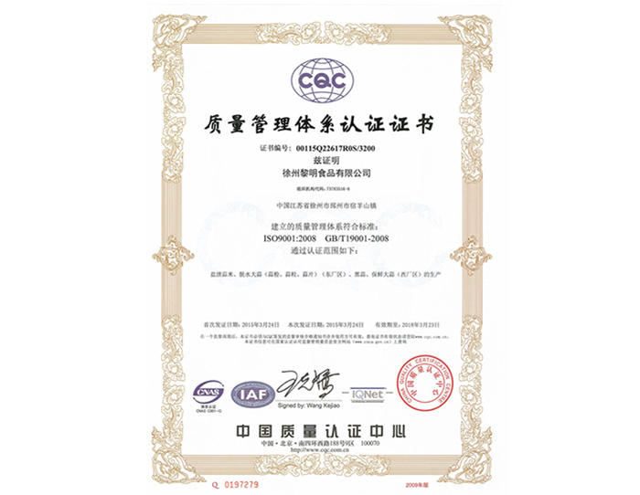 11月27日,黎明食品榮獲江蘇省綠色食品“五有”規范化企業;